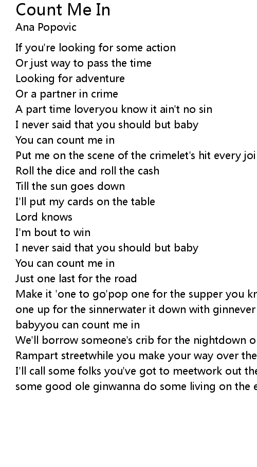 I'll call some folks you've got to meetwork out the switch for the stereoserve some good ole ginwanna do some living on the edgethan baby you can count me in |