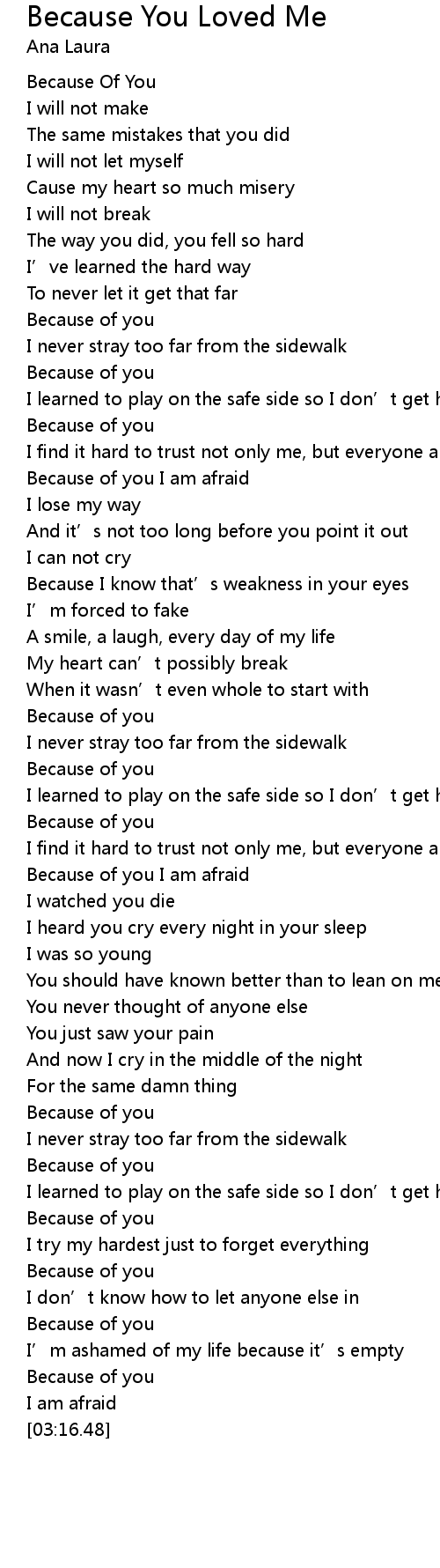 Because You Loved Me 歌词