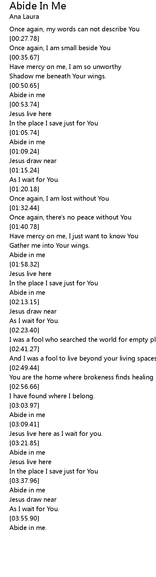 | [01:41.65] | Have mercy on me, I just want to know You |