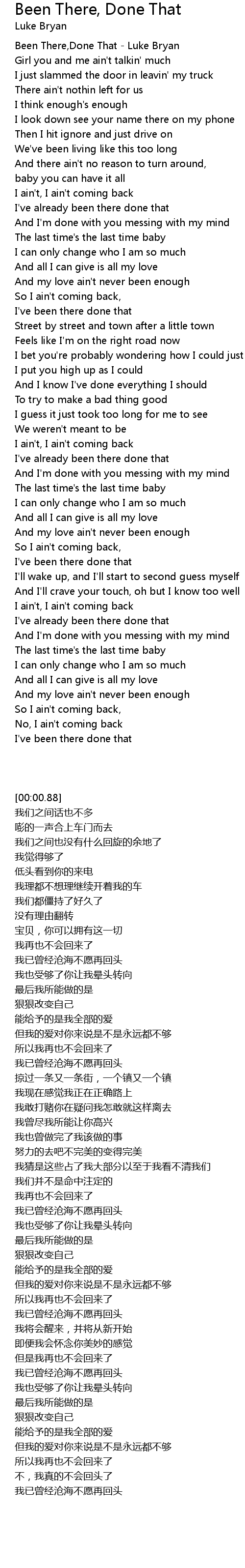 Been There,Done That - Luke Bryan |