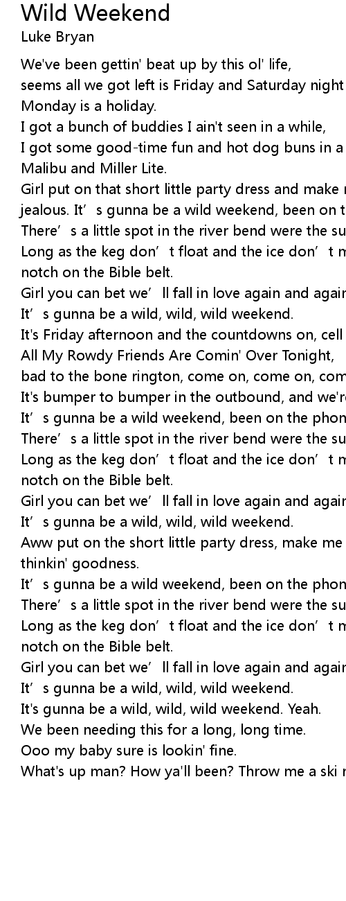 | It' s gunna be a wild, wild, wild weekend. Yeah. | |