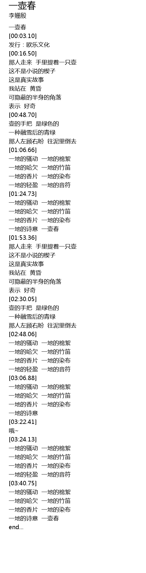 | [03:53.04] | 一地的诗意 一壶春 |