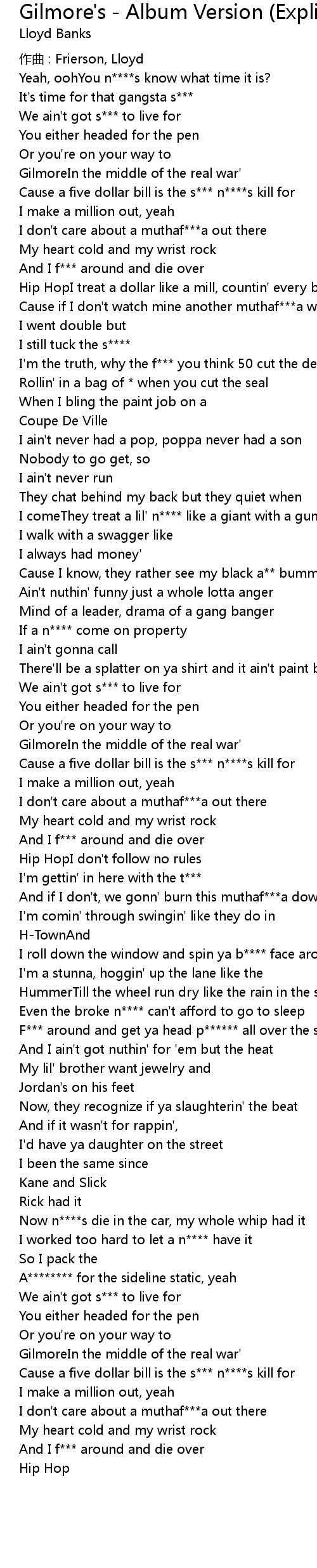| 歌曲 | Gilmore's - Album Version (Explicit) |
