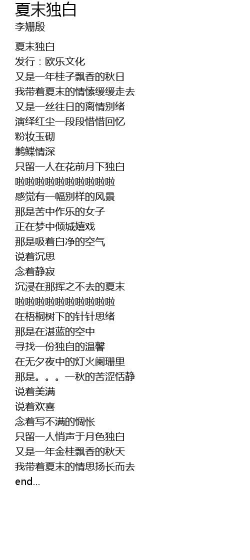 | [00:00.93] | 夏末独白 |