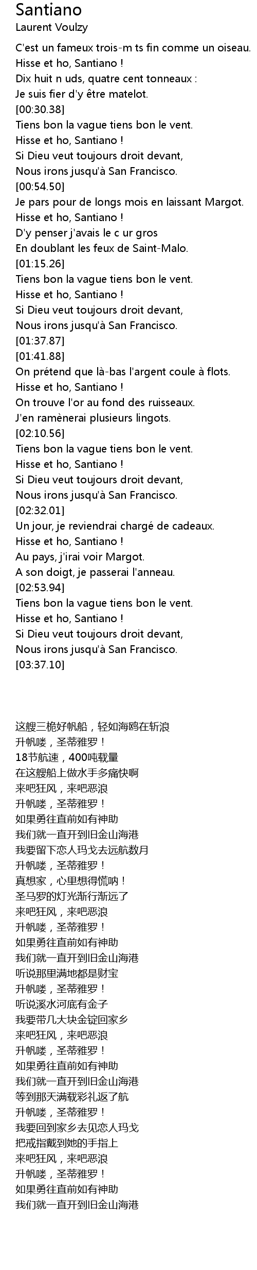| [00:36.96] | Hisse et ho, Santiano ! |