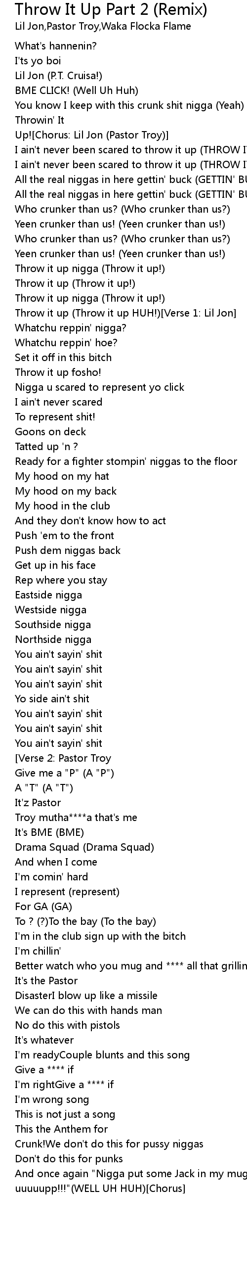 Throw it up (Throw it up HUH!)[Verse 1: Lil Jon] |