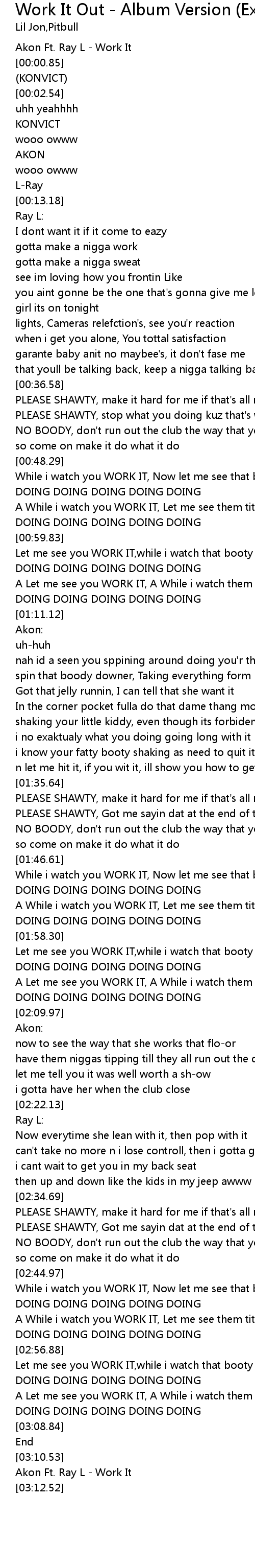 | [03:11.52] | Akon Ft. Ray L - Work It |