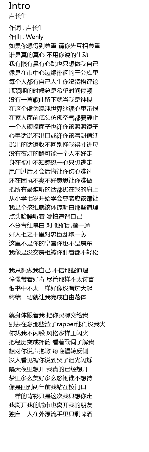 | 把经历变成押韵 看着歌词了解我 | |
