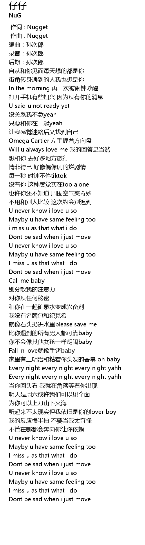 | [01:41.515] | Fall in love jiù xiàng shǒu kào baby |
