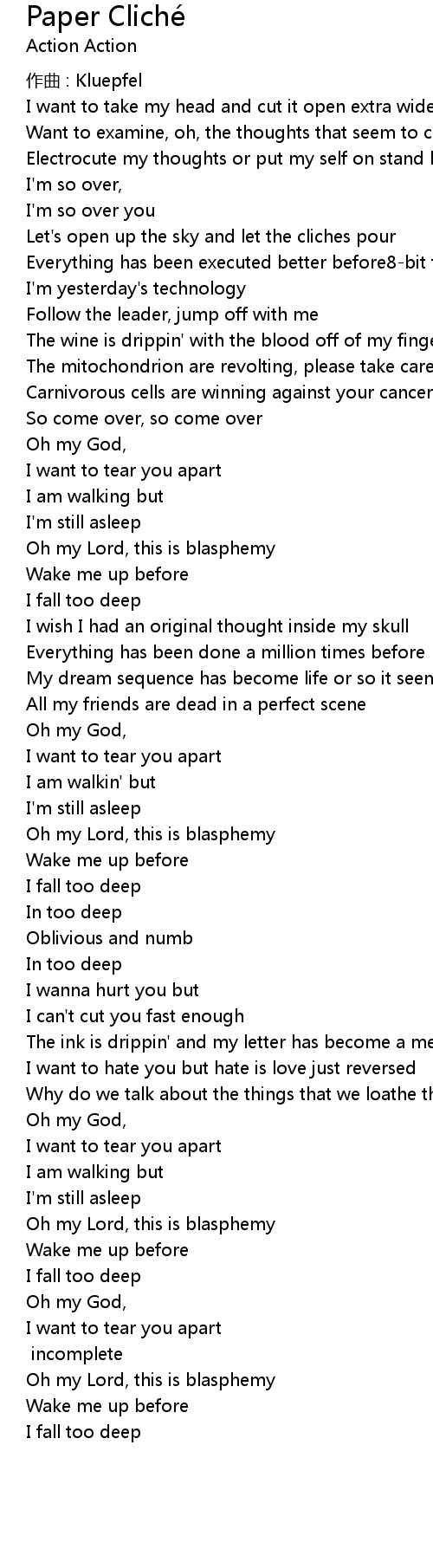 | Let' s open up the sky and let the cliches pour | |