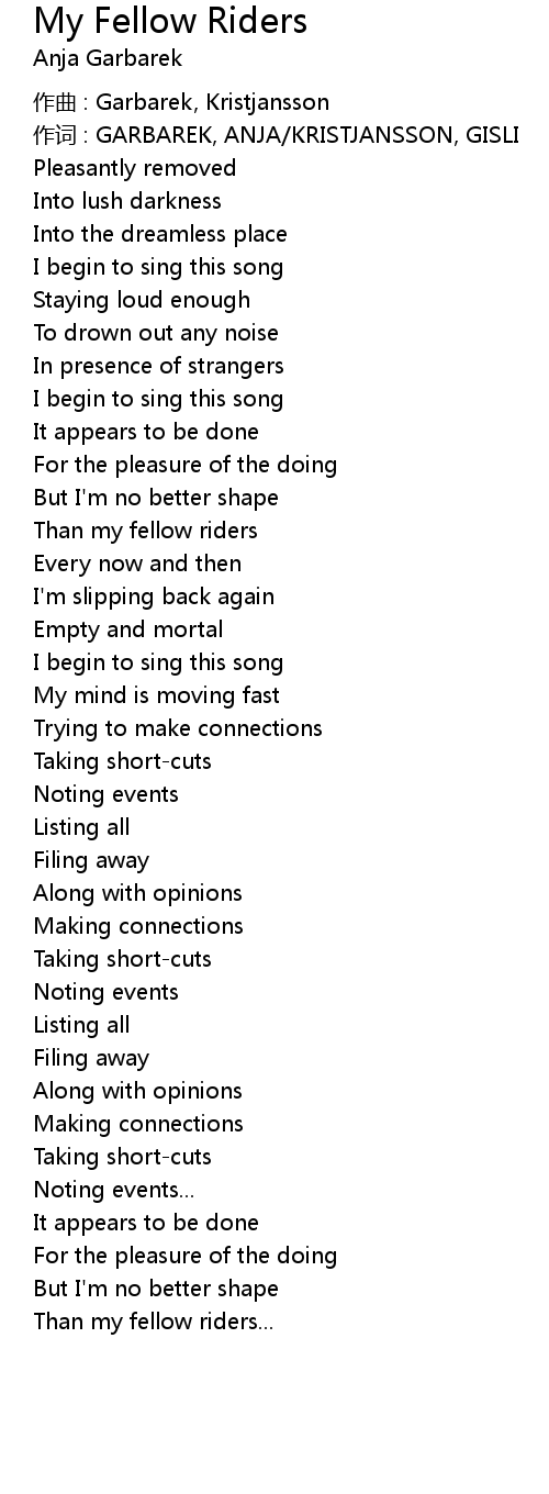 | 作词 : GARBAREK, ANJA/KRISTJANSSON, GISLI | |