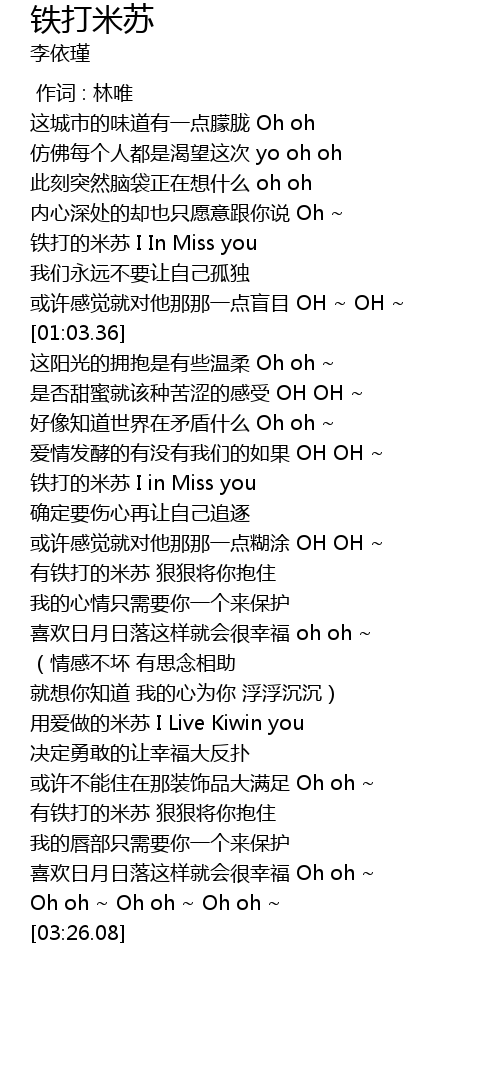 | [01:37.21] | 铁打的米苏 I in Miss you |