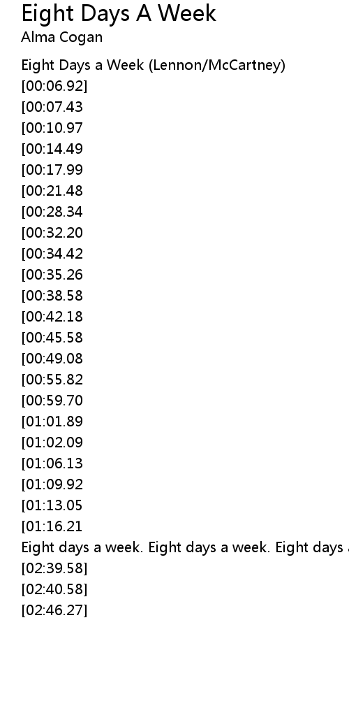 Eight days a week. Eight days a week. Eight days a week. |