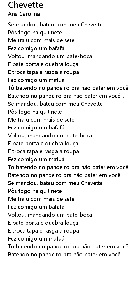 | Se mandou, bateu com meu Chevette | |