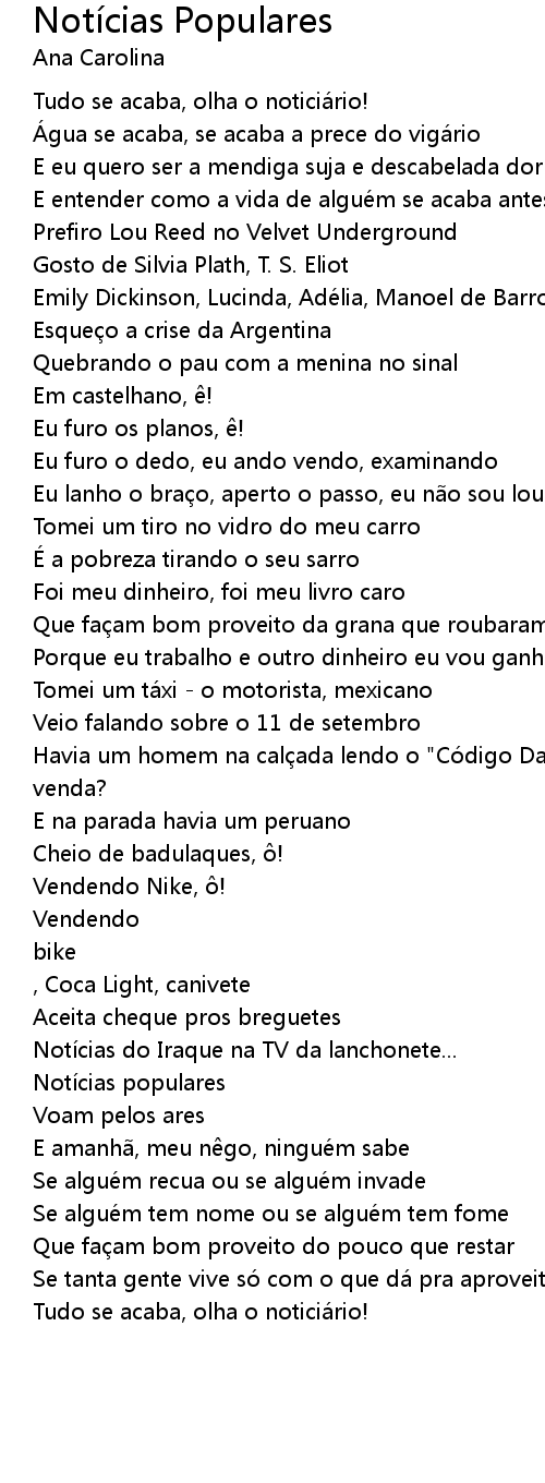 | Tudo se acaba, olha o noticiá rio! | |