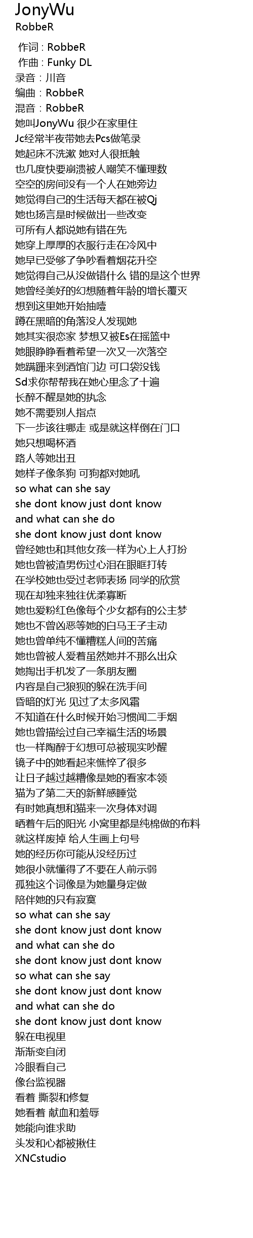 | [00:10.243] | 她叫JonyWu 很少在家里住 |