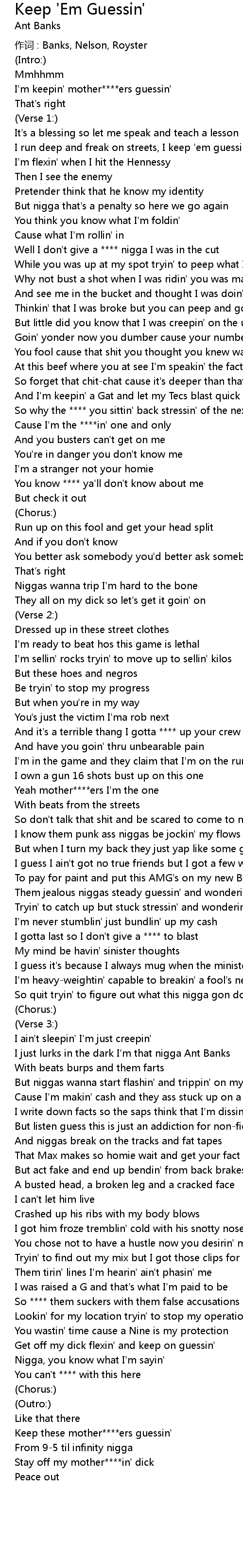 | I just lurks in the dark I' m that nigga Ant Banks | |