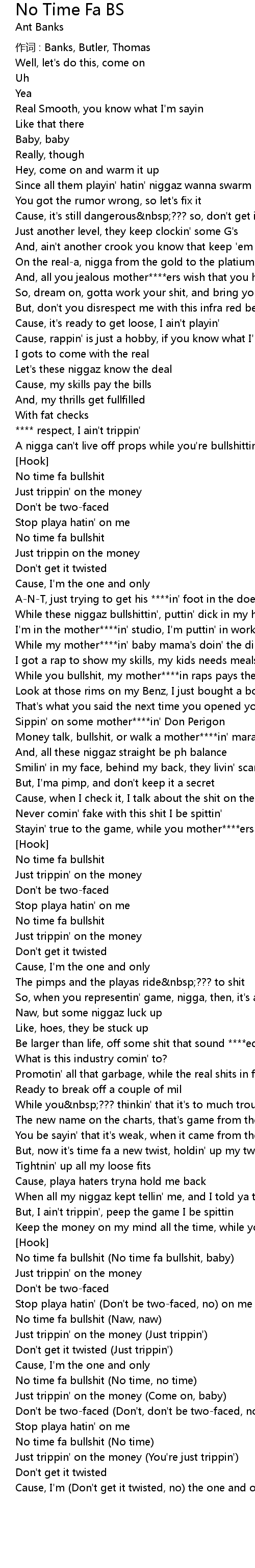 | Keep the money on my mind all the time, while you' re bullshittin' | |