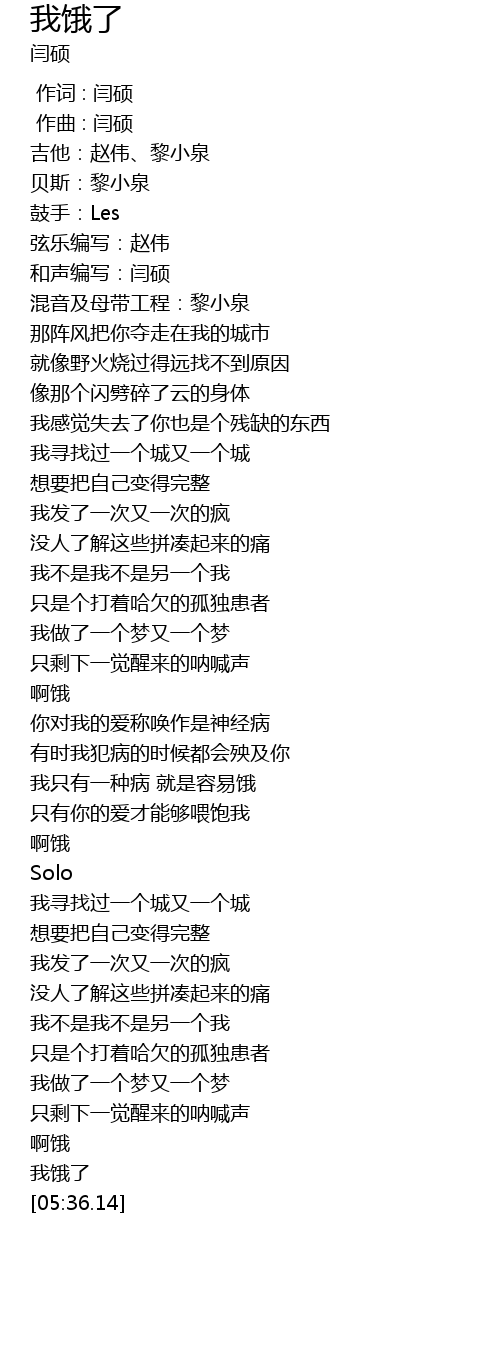 | [05:33.23] | 我饿了 |