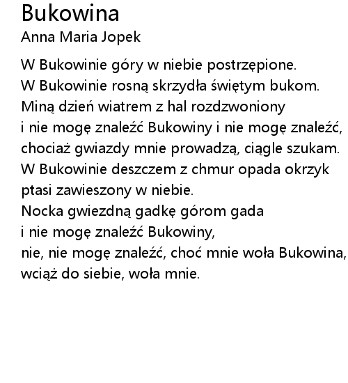 | i nie mogę znaleźć Bukowiny i nie mogę znaleźć, | |