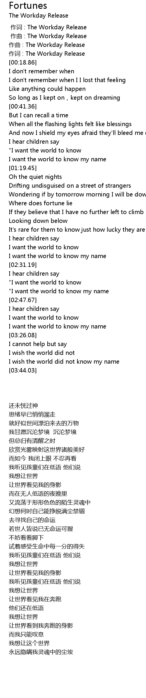 | [00:00.000] | zuò qǔ : The Workday Release |