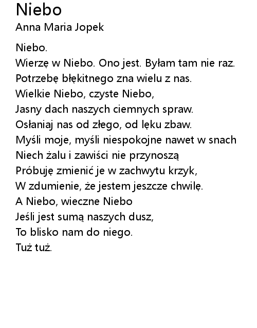 | Wierzę w Niebo. Ono jest. Byłam tam nie raz. | |