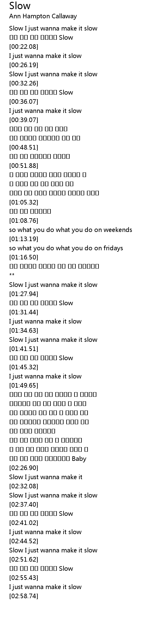 | [02:33.59] | Slow I just wanna make it slow |