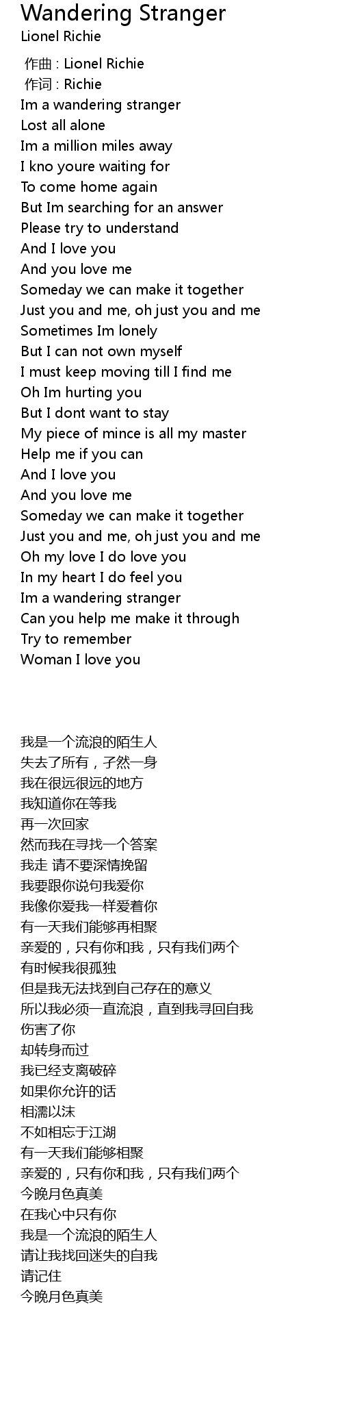 | [00:00.00] | zuo qu : Lionel Richie |