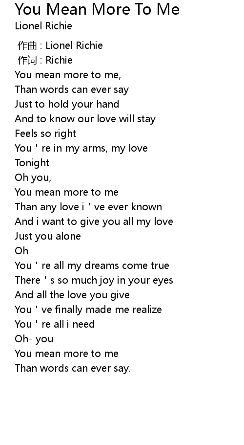 | 歌曲 | You Mean More To Me |