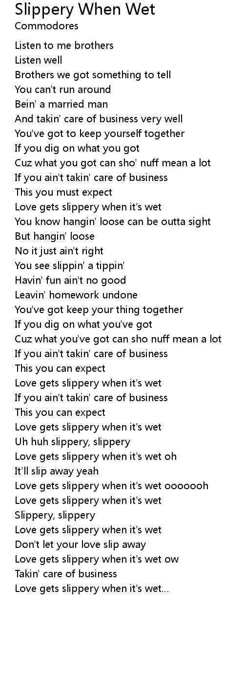 | Love gets slippery when it' s wet oh | |