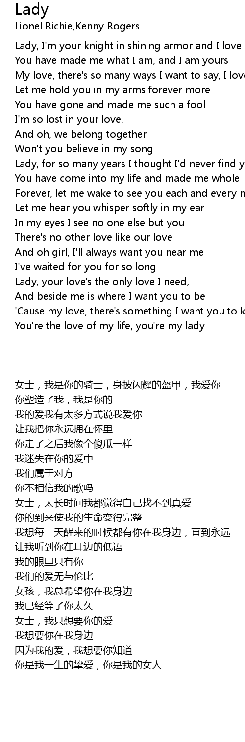 You're the love of my life, you're my lady |