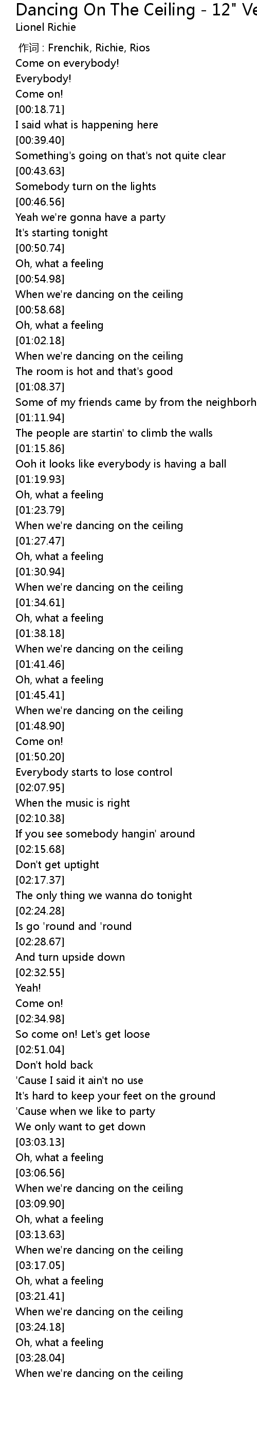 | 歌曲 | Dancing On The Ceiling - 12" Version |