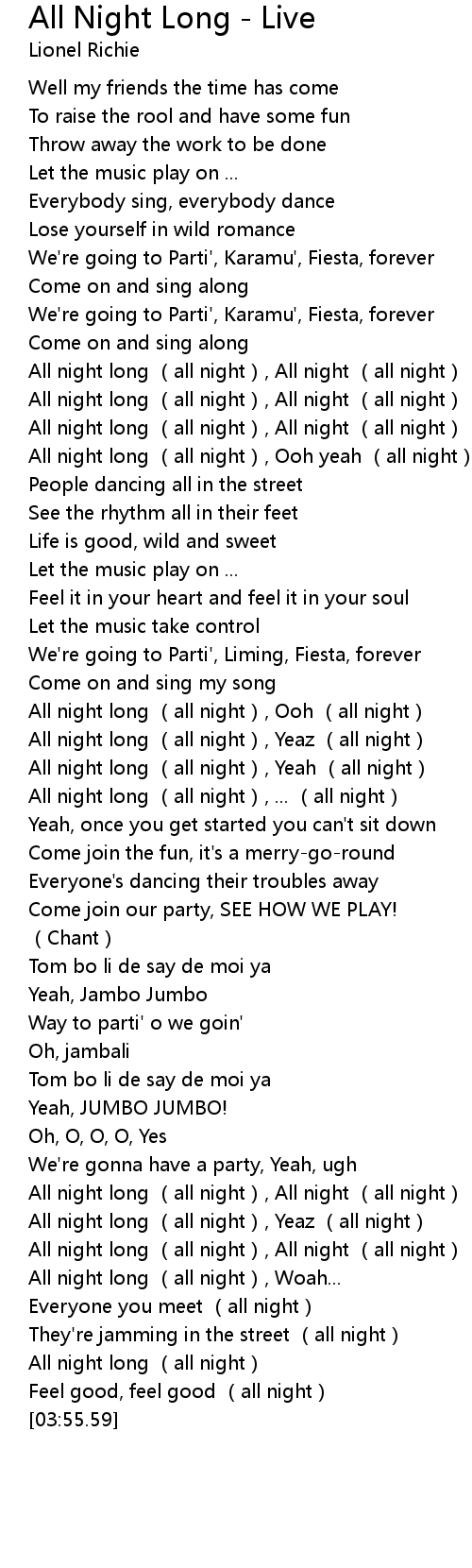 | [03:14.72] | All night long (all night), All night (all night) |