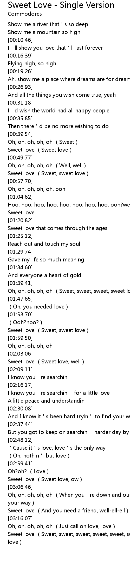 | [03:19.94] | Sweet love Sweet, sweet, sweet, sweet, sweet, sweet, sweet, sweet love |