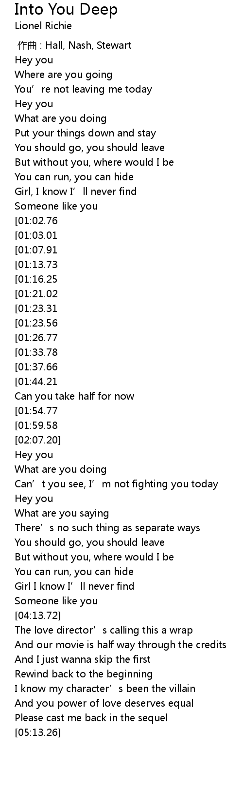 | [03:40.95][01:54.77] | I’m into you deep |