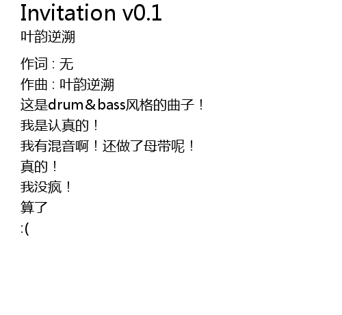 | 歌曲 | Invitation v0.1 |