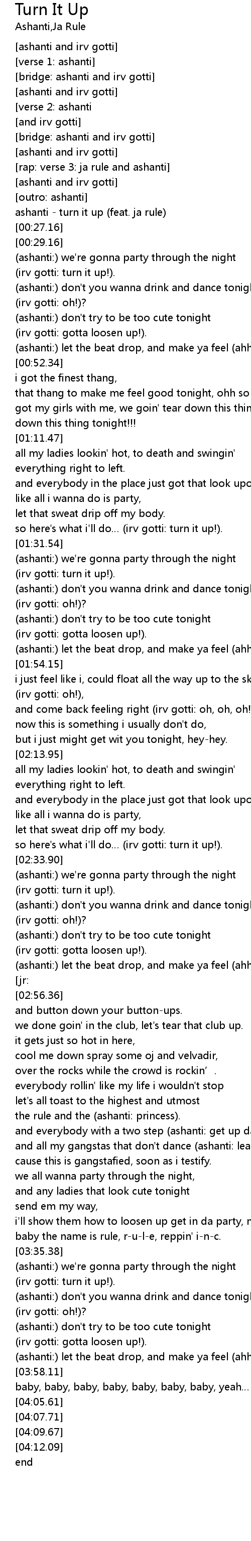 | [00:00.00] | ashanti turn it up feat. ja rule |