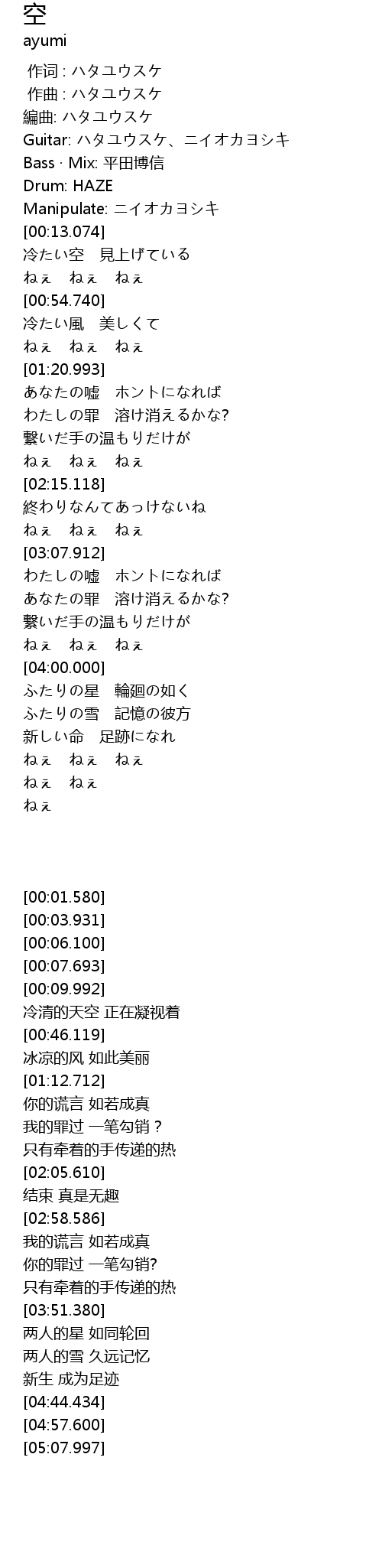 | 歌曲 | 空 |