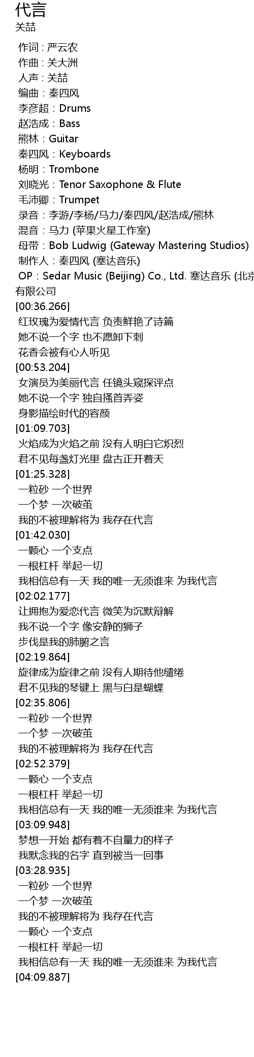 | [00:02.000] | 人声 : 关喆 |