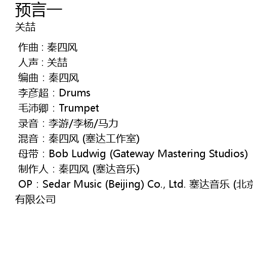 | [00:18.193] | OP:Sedar Music (Beijing) Co., Ltd. 塞达音乐 (北京) 有限公司 |