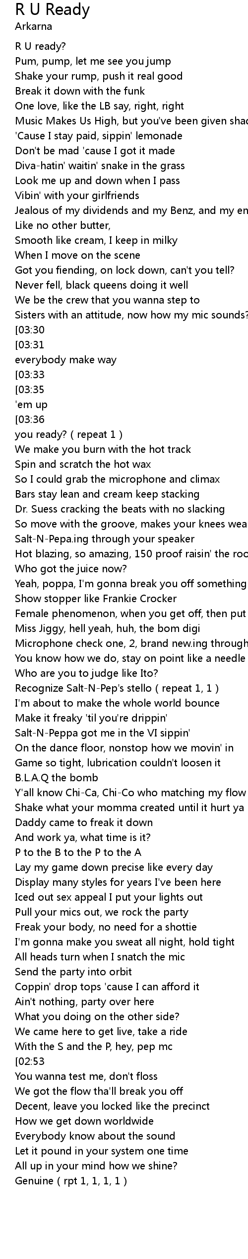 | [01:15] | Salt-N-Pepa.ing through your speaker |