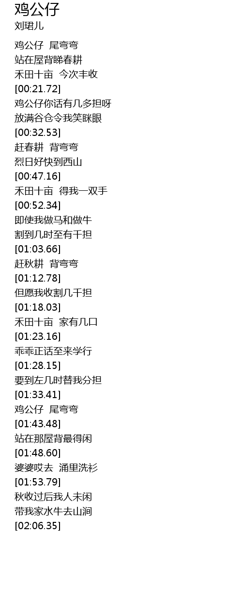 | [01:40.16] | 鸡公仔 尾弯弯 |