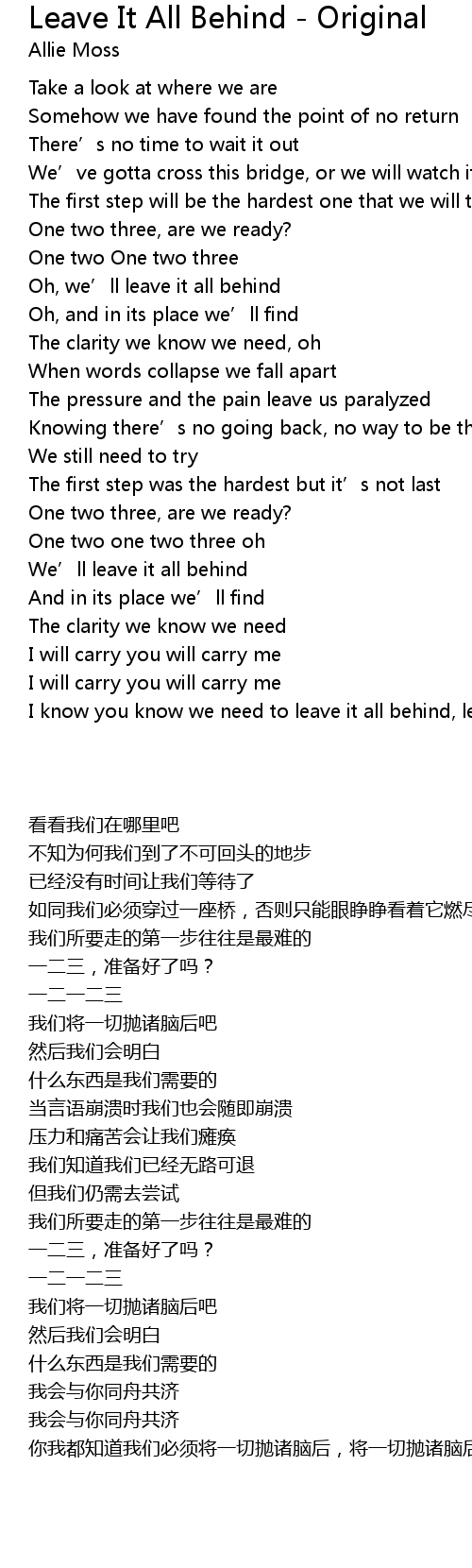 | 歌曲 | Leave It All Behind - Original |