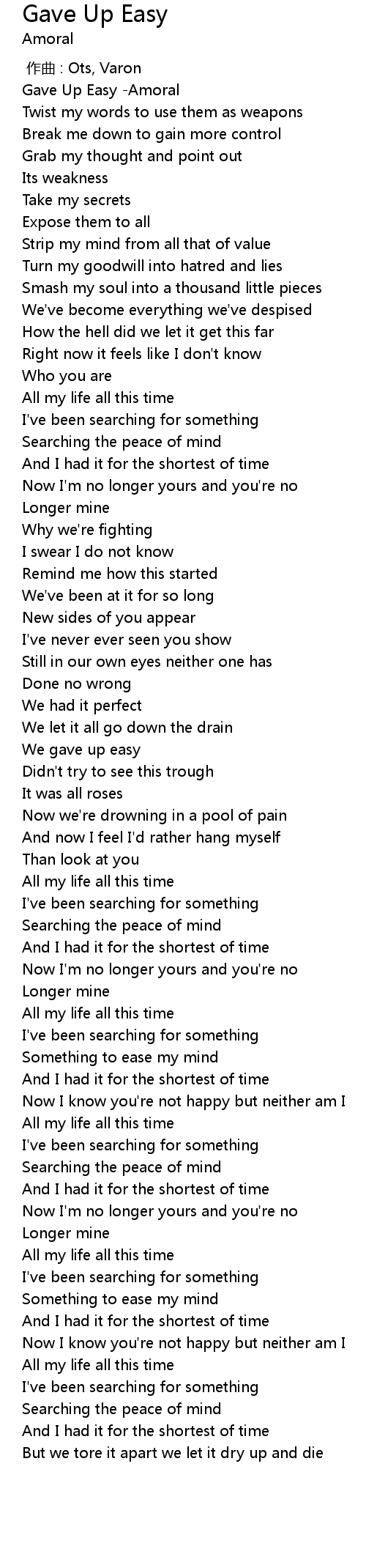 | [00:00.00] | Gave Up Easy -Amoral |