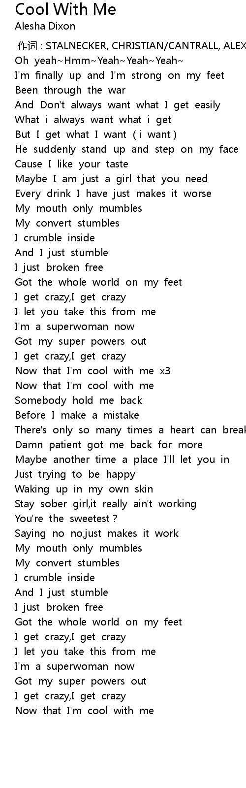 | [02:20.200] | Now that I'm cool with me |