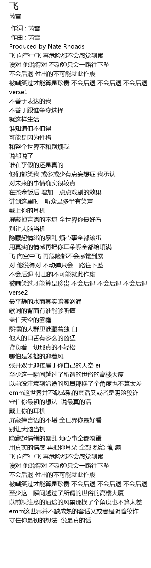 | [02:31.175] | 飞 向空中飞 再危险都不会感觉到累 |