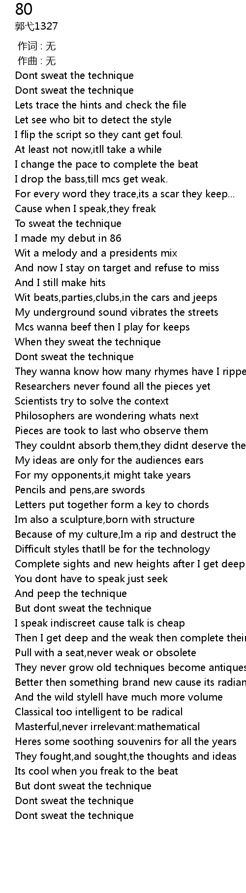 | [00:38.210] | I drop the bass,till mcs get weak. |