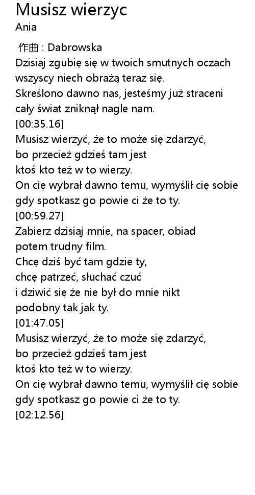 | [00:35.60] | Musisz wierzy, e to mo e si zdarzy, |