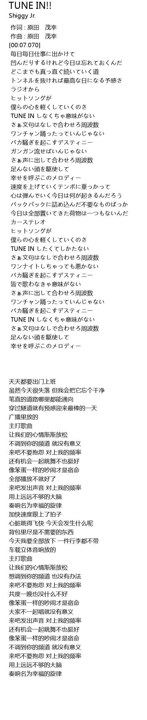 | [03:14.243] | TUNE IN しなくちゃ意味がない |