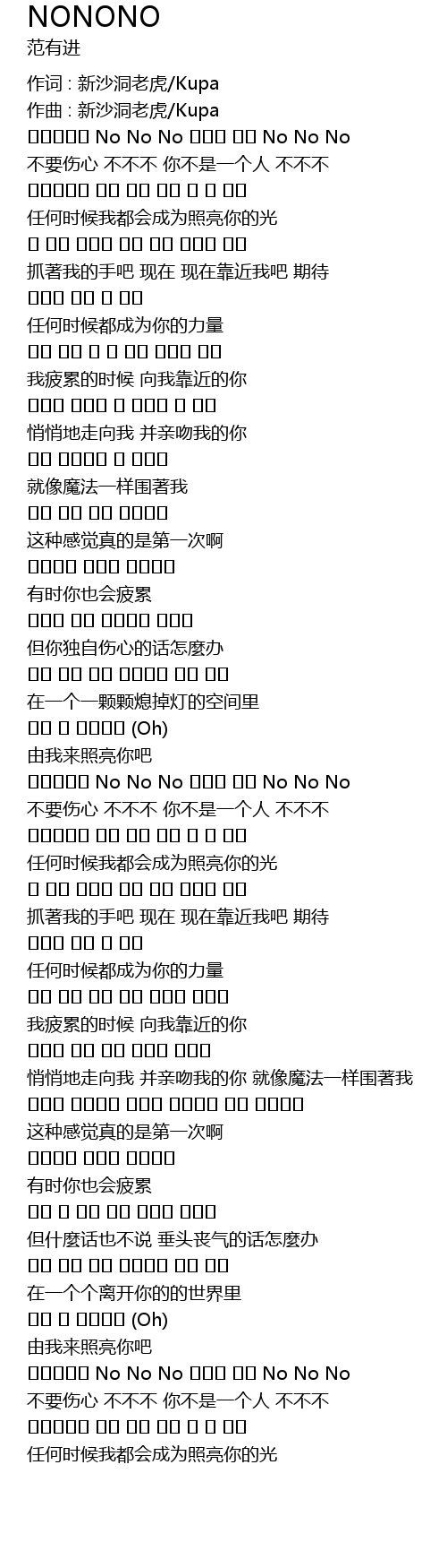 | 슬퍼하지마 No No No 혼자가 아냐 No No No | |